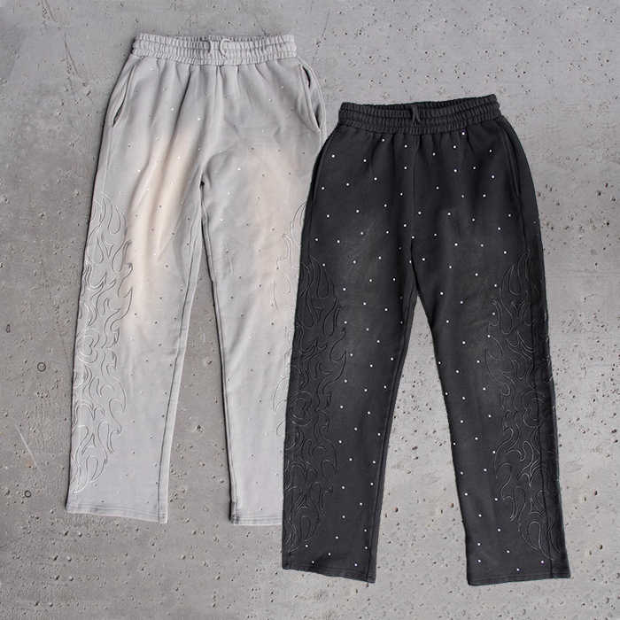 Pantalons de survêtement personnalisés vintage avec logo brodé délavé au soleil Pantalons de survêtement en coton épais pour hommes Style décontracté avec service OEM