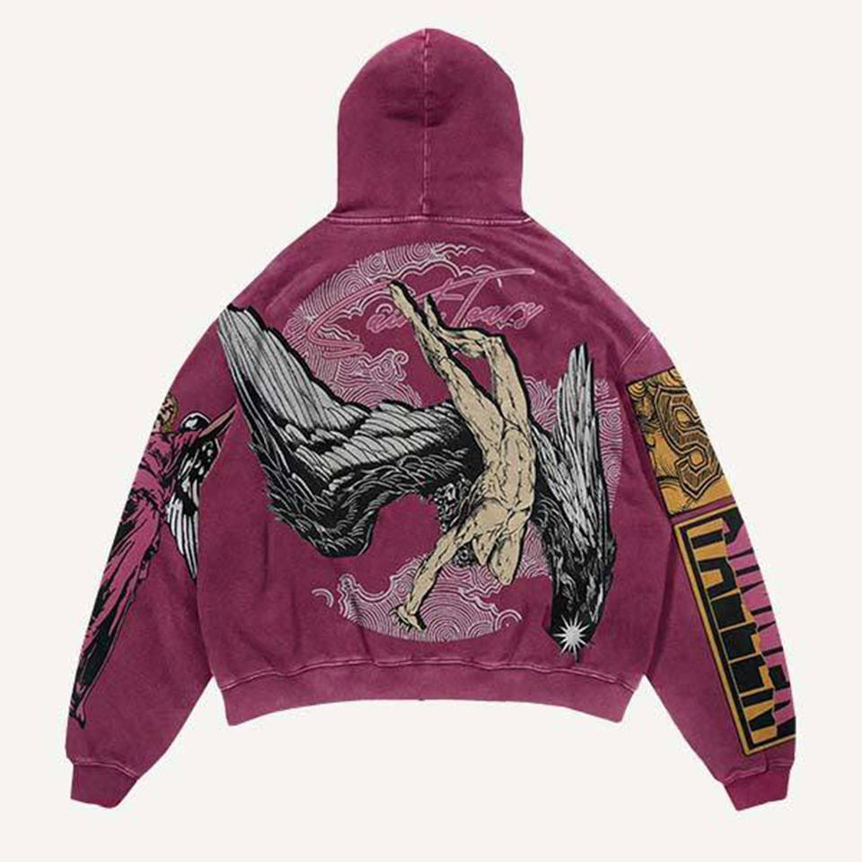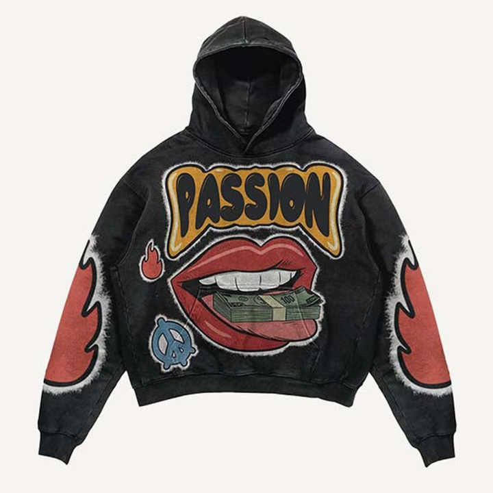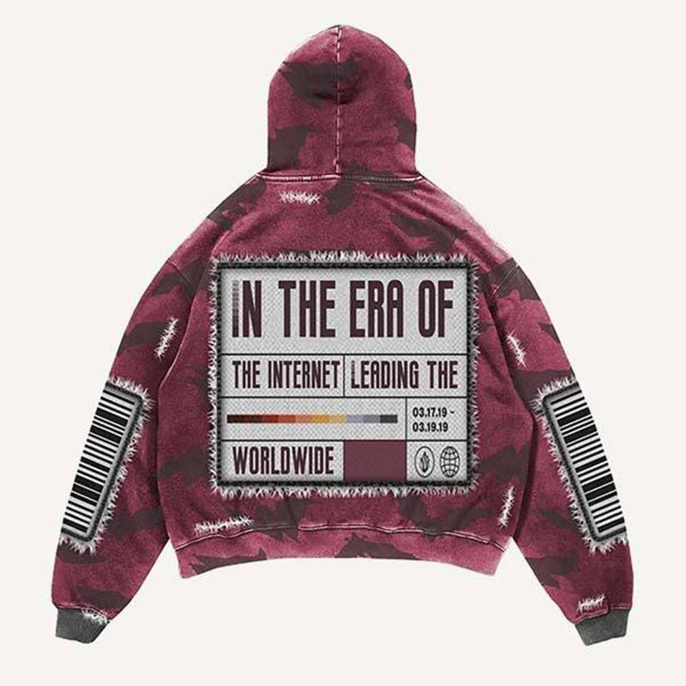 Sweat à capuche en coton 100% surdimensionné, tricoté à la main, vintage, personnalisé, design élaboré, charmant, streetwear, imprimé, robuste