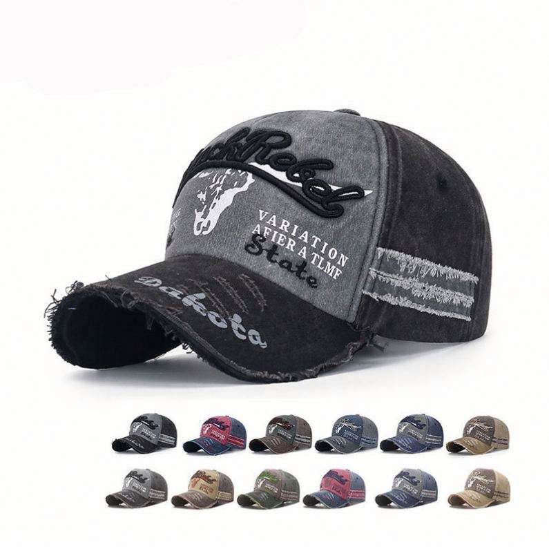 Casquette de baseball vintage personnalisée bicolore délavée et vieillie avec logo brodé et visière incurvée