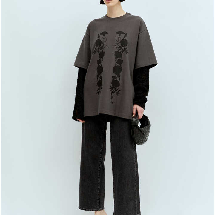 T-shirt personnalisé Vintage Wash Double Couche Sérigraphie DTG à manches longues Boxy 280 Grammes Streetwear T Shirt