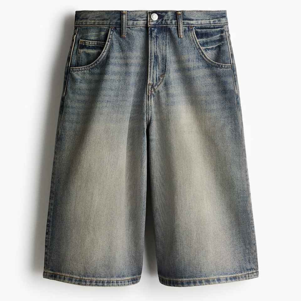 Custom Vintage Wash Jorts Men Jeans Shorts Men Fashion Denim Shorts Crystal Embellished Raw Edge Streetwear Denim Shorts