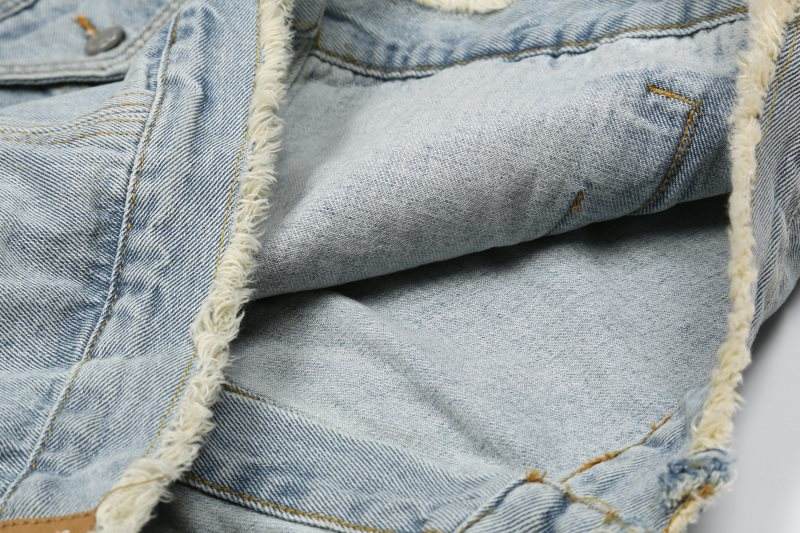 Veste en jean personnalisée pour homme, tissu denim délavé vintage avec poches effilochées