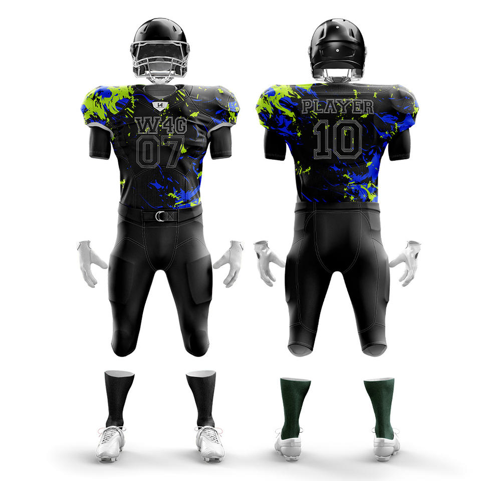 Personnalisé W4G 100% Polyester Respirant Football Américain Maillots Shorts Ensemble Séchage Rapide Transfert De Chaleur Imprimé Plus La Taille