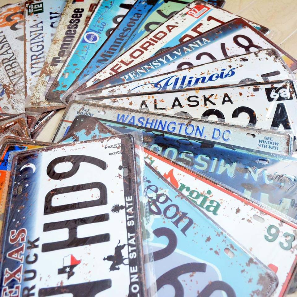 Lot de 15/20/25/30 pièces d'étiquettes numérotées vintage des États américains, plaques d'immatriculation en relief, entrepôt personnalisé, garage Man Cave
