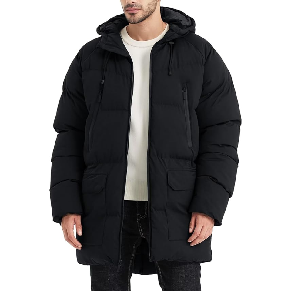 Veste d'hiver unisexe à capuche coupe-vent personnalisée, col montant, parka longue en toile avec fermeture éclair sur le devant