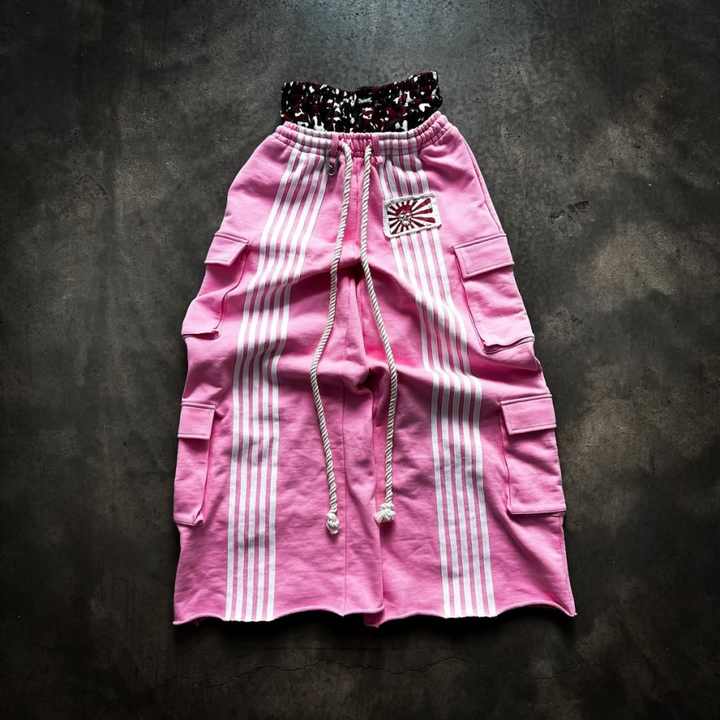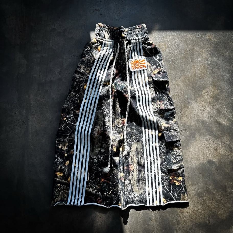 Pantalon cargo ample vintage à jambes larges à double taille en coton à poches multiples lavage personnalisé Impression numérique délavée pour hommes