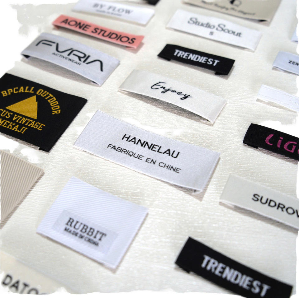 Étiquettes tissées en PVC personnalisées lavables - Étiquettes de vêtements écologiques imprimées numériquement, découpées à l'échographie, gaufrées, sans pli