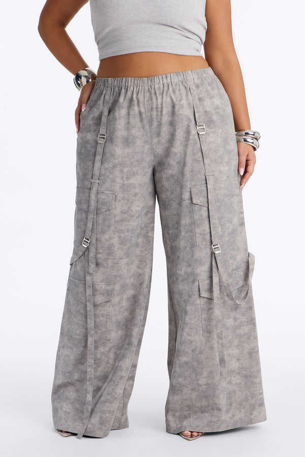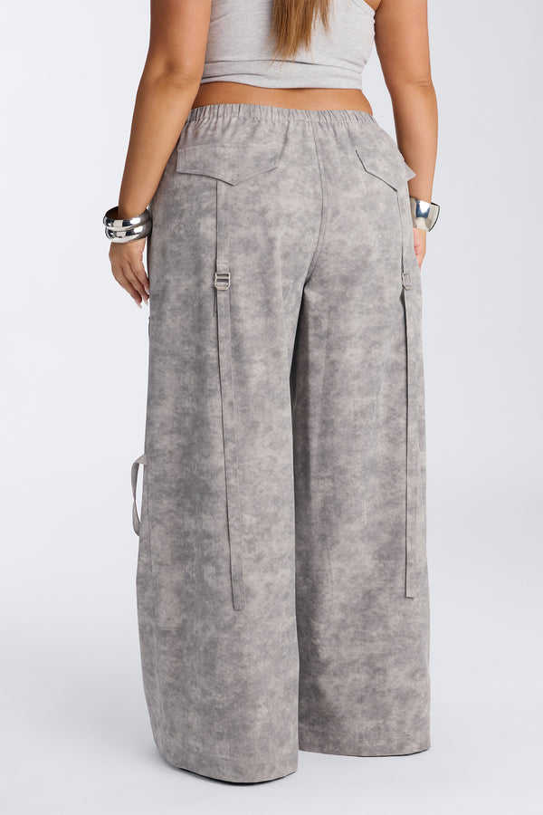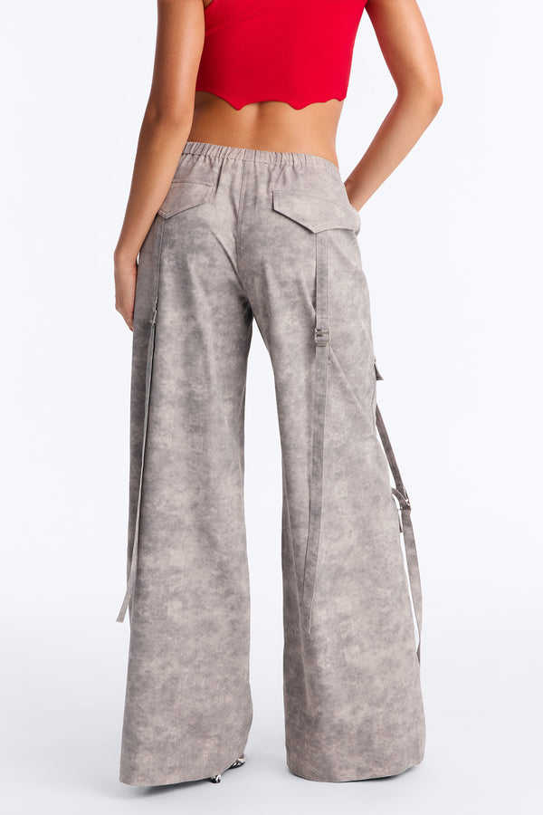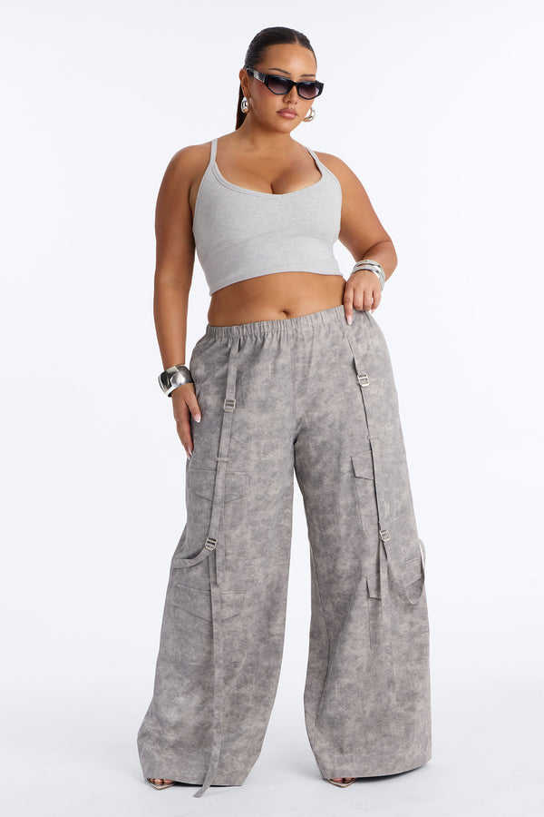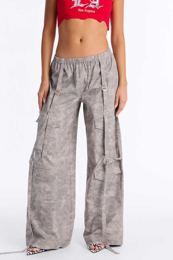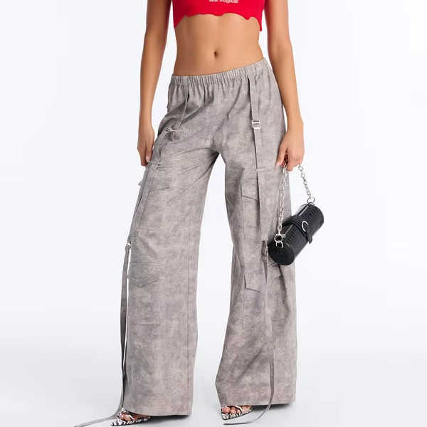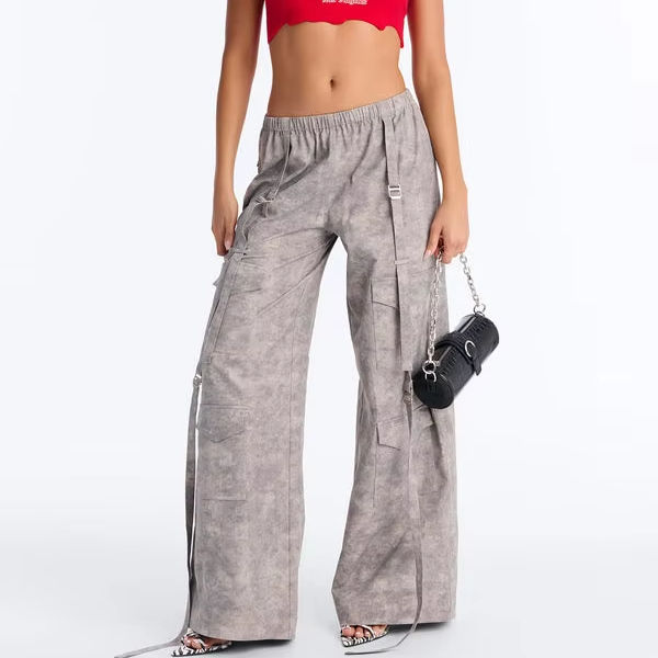 Pantalon cargo gris délavé sur mesure à jambe large avec détails de sangle, style streetwear, fournisseur OEM, pantalons et jupes pour hommes