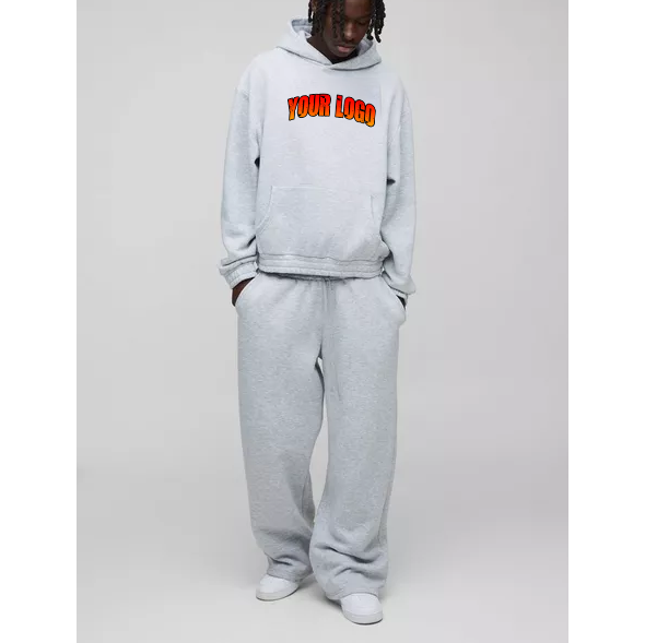 Sweat à capuche surdimensionné personnalisé gris chiné délavé et pantalon de survêtement à jambes larges ensembles de survêtement Streetwear unisexe Vintage Raw-Edge