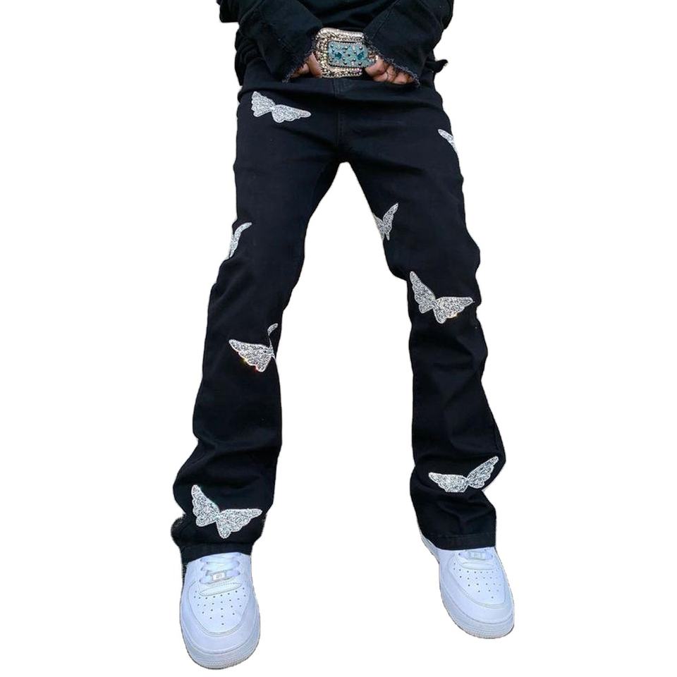Custom Washed Stretch Denim Cotton Trouser for Men Heavyweight Flare Jeans Streetwear Embroidery Black Skinny Pants at Nurak