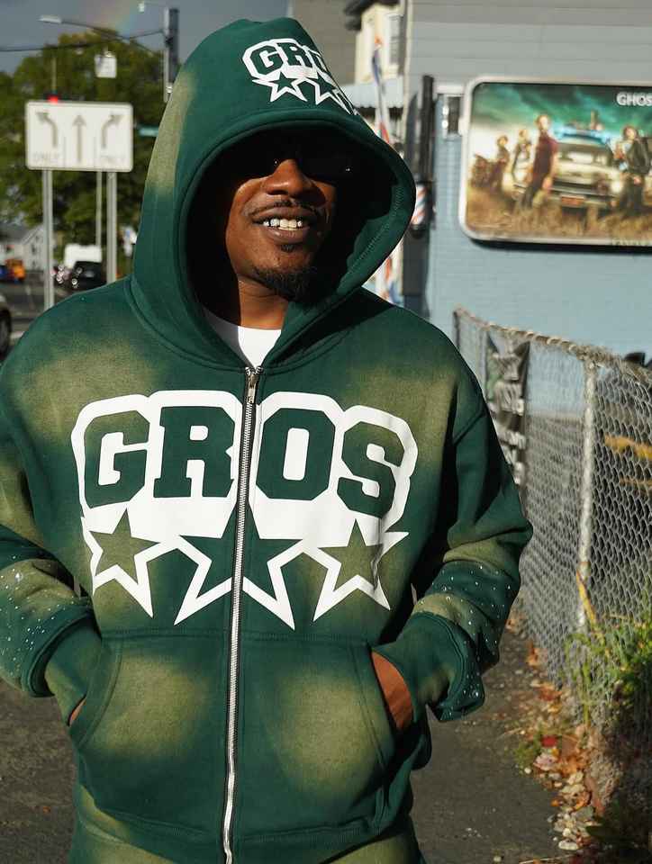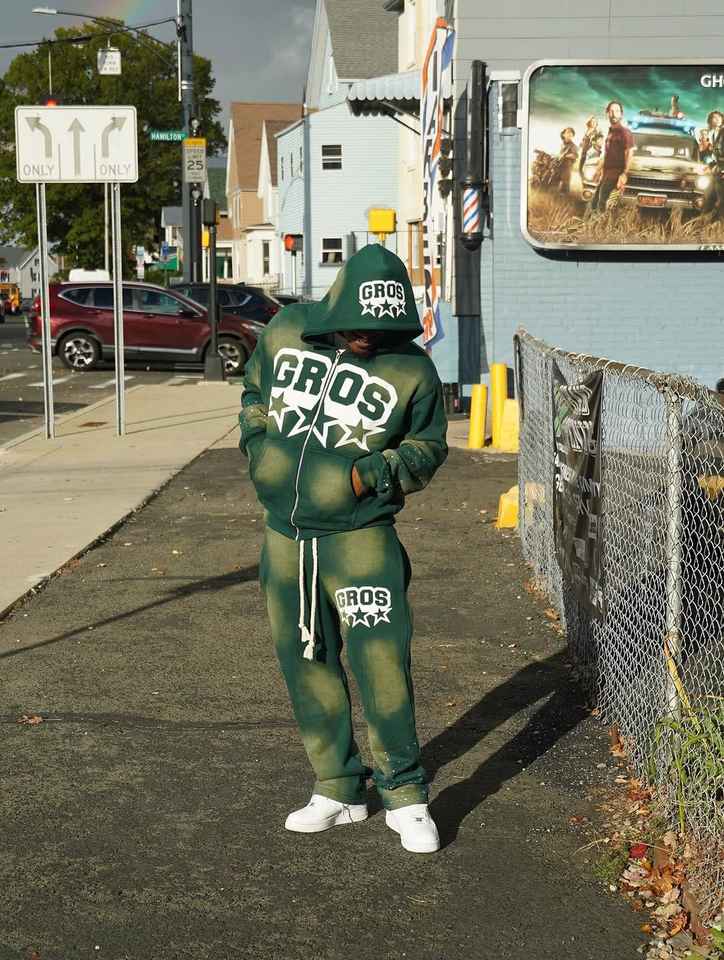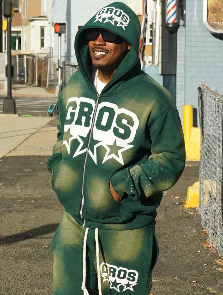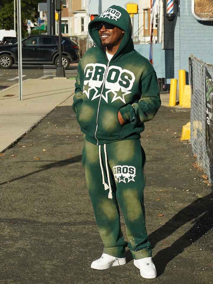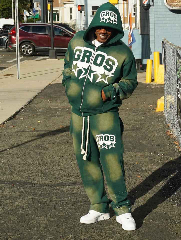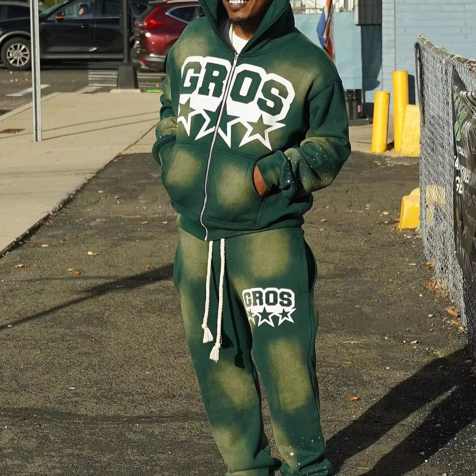 Ensemble survêtement personnalisé délavé Ensemble survêtement à capuche avec fermeture éclair Ensemble pantalon de survêtement et sweat à capuche évasés avec lavage à l'acide