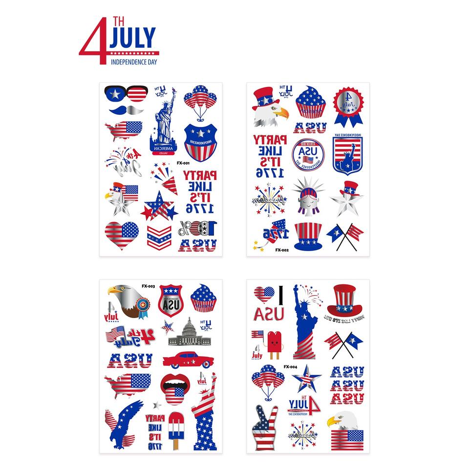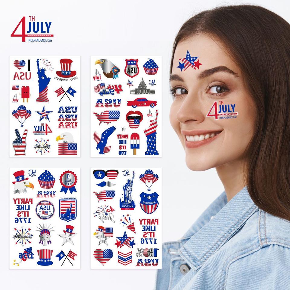 Tatouage temporaire personnalisé à transfert d'eau, drapeau américain, Jour de l'Indépendance, 4 juillet