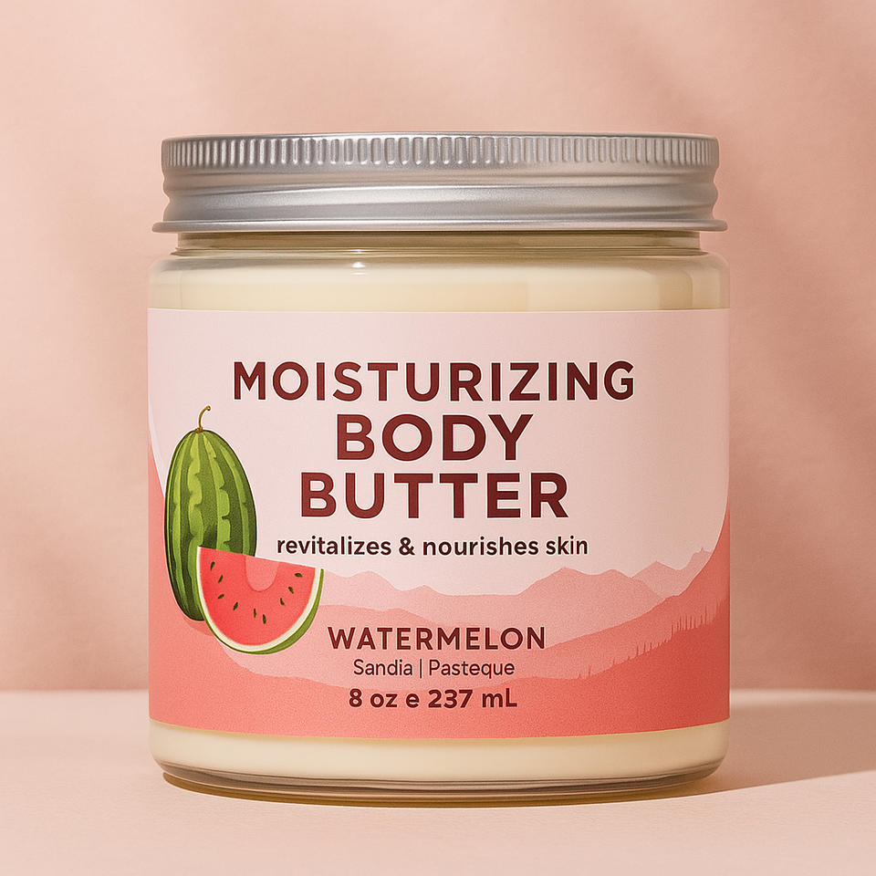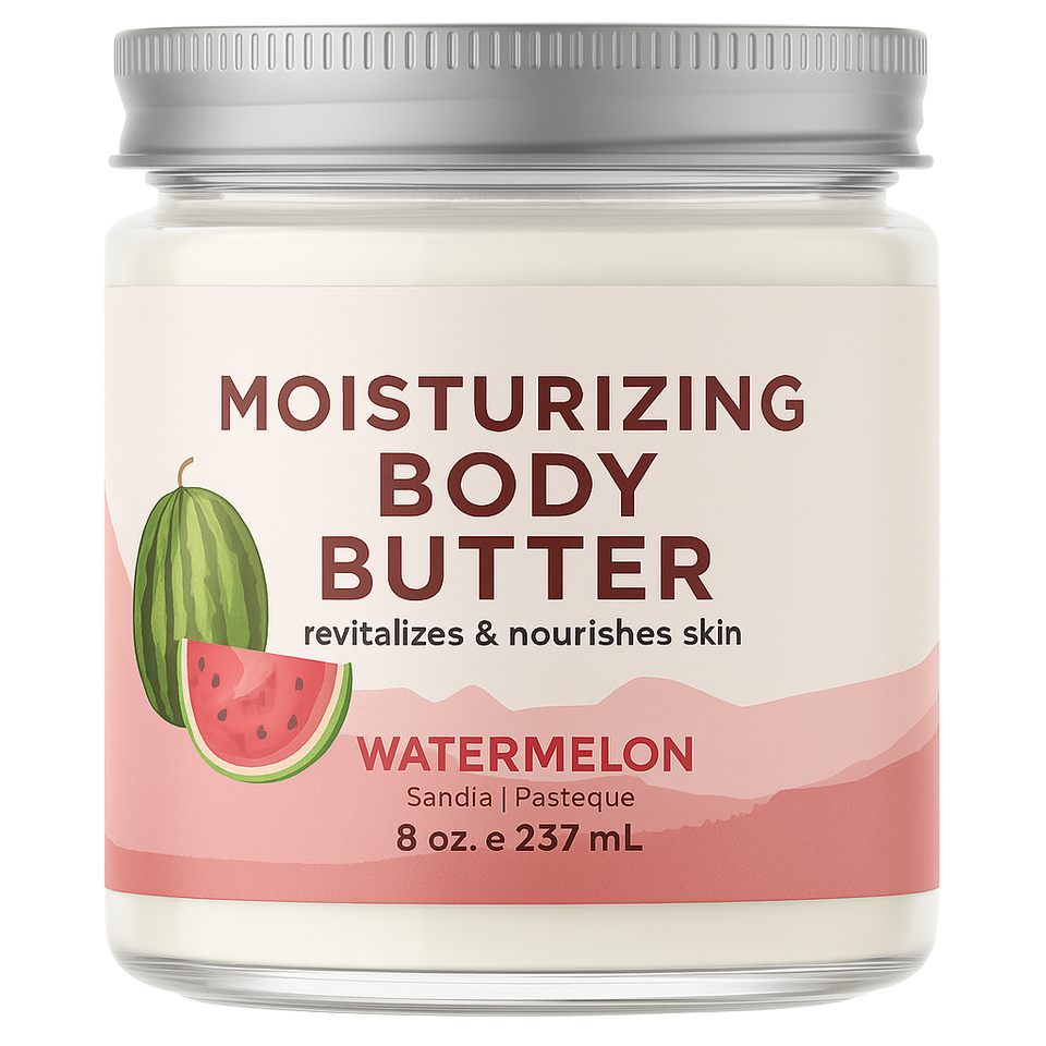 Vitamine E, Beurre de bassie, Sans silicone, Organique, Sans Sulfate, Sans cruauté, Beurre corporel clarifiant à la mandarine et à la mangue, Beurre corporel à la pastèqueIngrédient