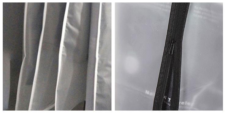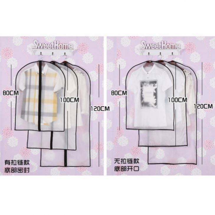 Housse de costume personnalisée en polyester transparent, imperméable et anti-poussière, avec fermeture éclair et poche intérieure
