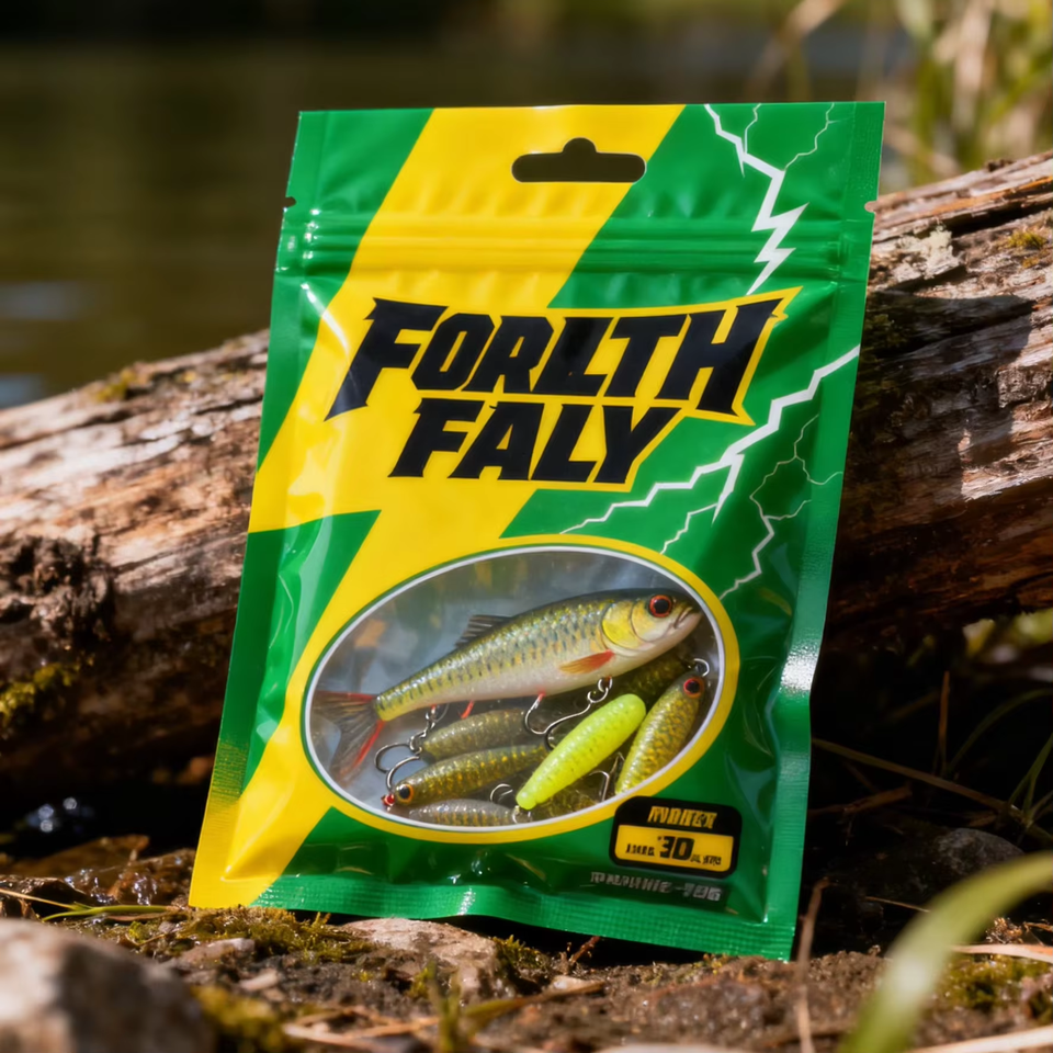Sac d'emballage plat imperméable personnalisé avec fermeture éclair, appât de pêche, leurre à poisson, fermeture à trois côtés, pochette refermable