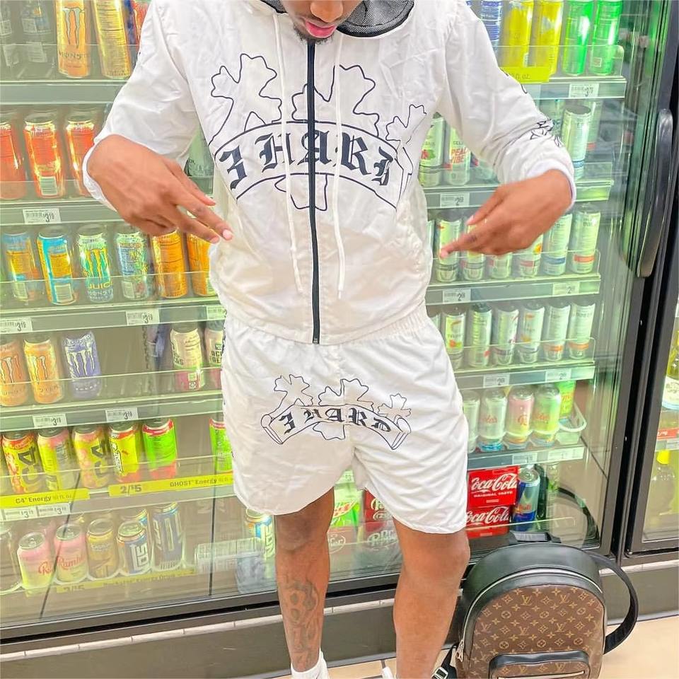 Custom Waterproof Nylon Jacket Outdoor Windbreaker Tracksuit Patchwork Short Set Hiking Summer Lightweight Hoodie Shorts Set