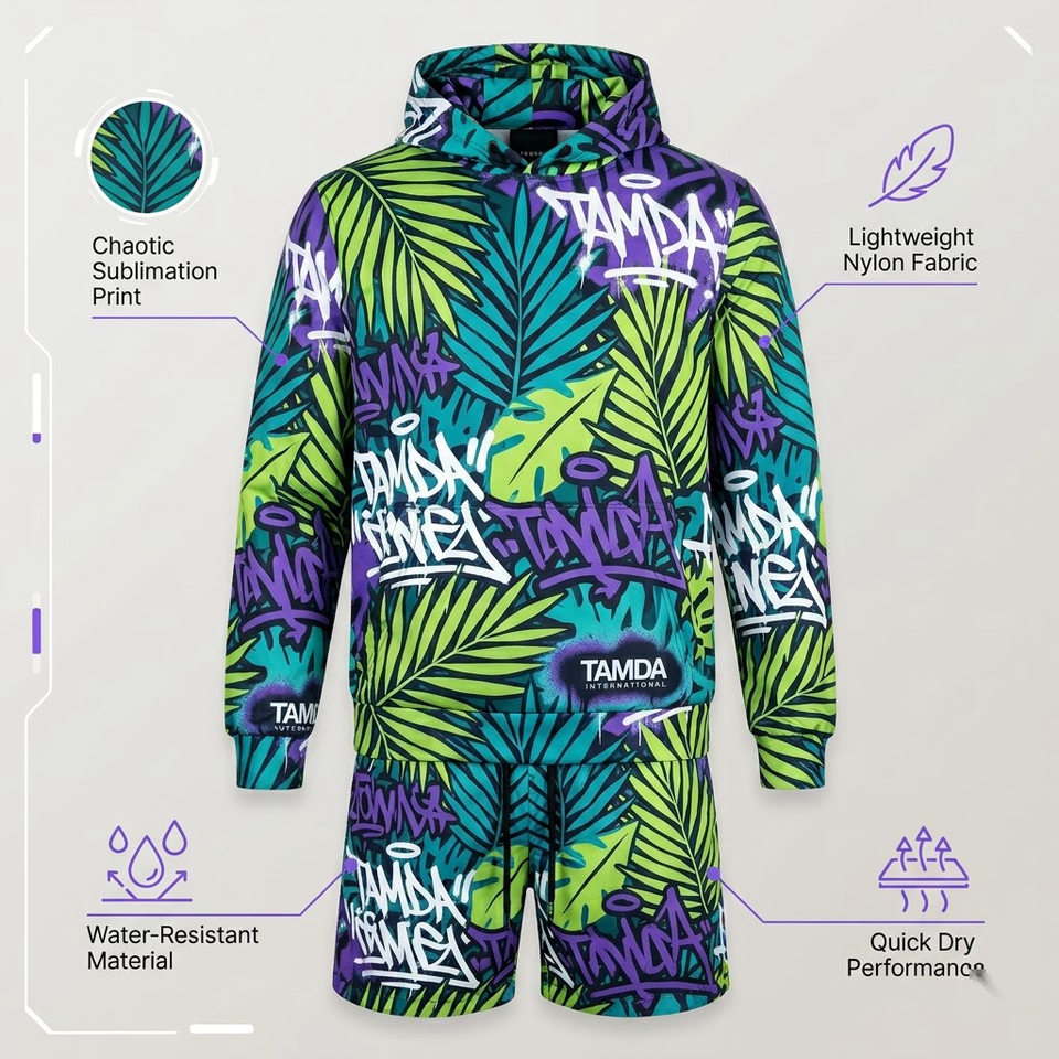 Ensemble veste et short en nylon imperméable personnalisé – Coupe-vent léger | Ensemble de survêtement d'été avec sweat à capuche et short