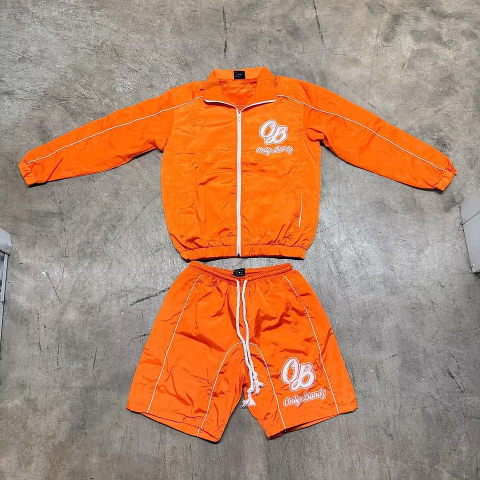 Veste en nylon imperméable personnalisée Ensemble short de survêtement coupe-vent Ensemble short d'été Veste Joggers Ensemble short à capuche léger