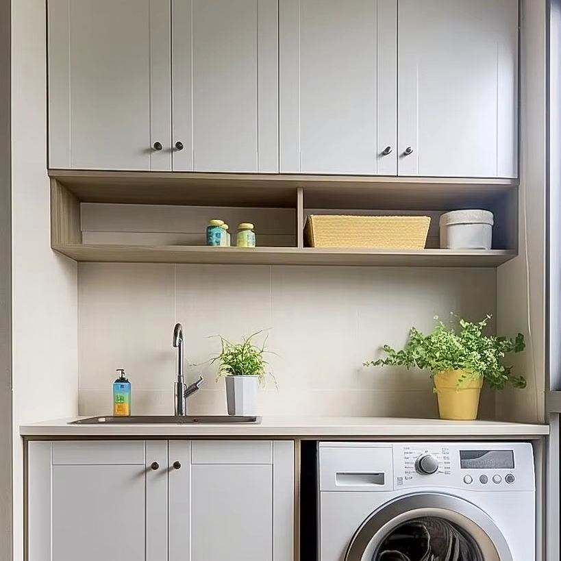 Ensemble de meubles de salle de lavage en contreplaqué imperméable moderne multifonctionnel facile à nettoyer, armoire pour lave-linge