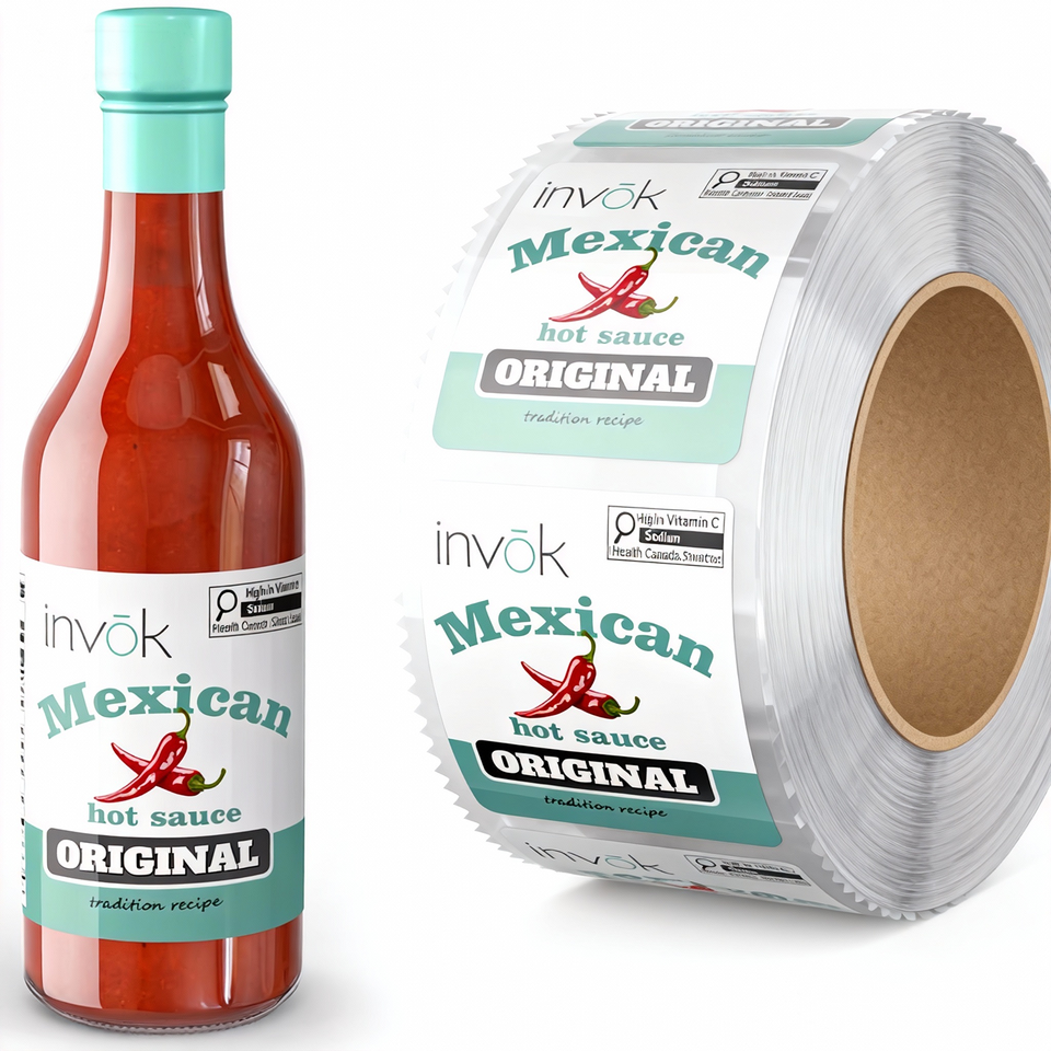Étiquettes personnalisées imperméables en rouleau adhésif brillant pour pots à épices, étiquettes pour sauce piquante, autocollants pour emballages de bouteilles alimentaires
