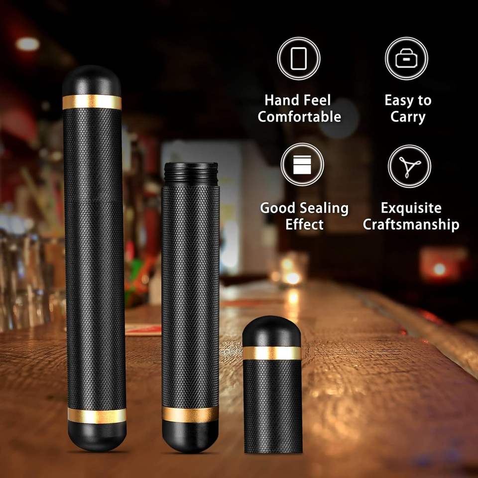 Mini porte-cigares élégant et portable de voyage étanche personnalisé étui à cigares en aluminium et métal noir unique tube avec bouchon d'humidificateur