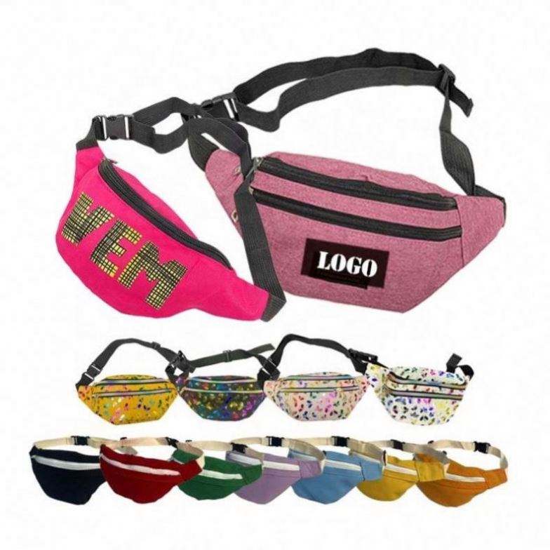 Sac banane unisexe personnalisé en polyester imperméable pour enfants, idéal pour les voyages, le sport, la course à pied, avec fermeture éclair et motif brodé, cadeau promotionnel