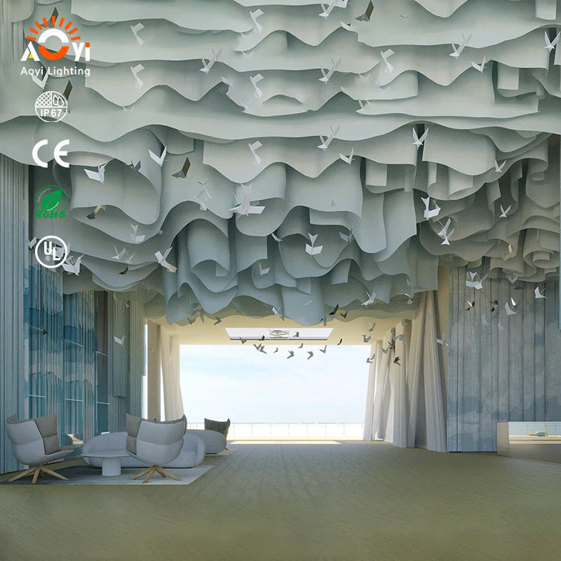 Installation de plafond en nuages ondulés sur mesure - Sculpture LED artistique pour centre commercial et atrium
