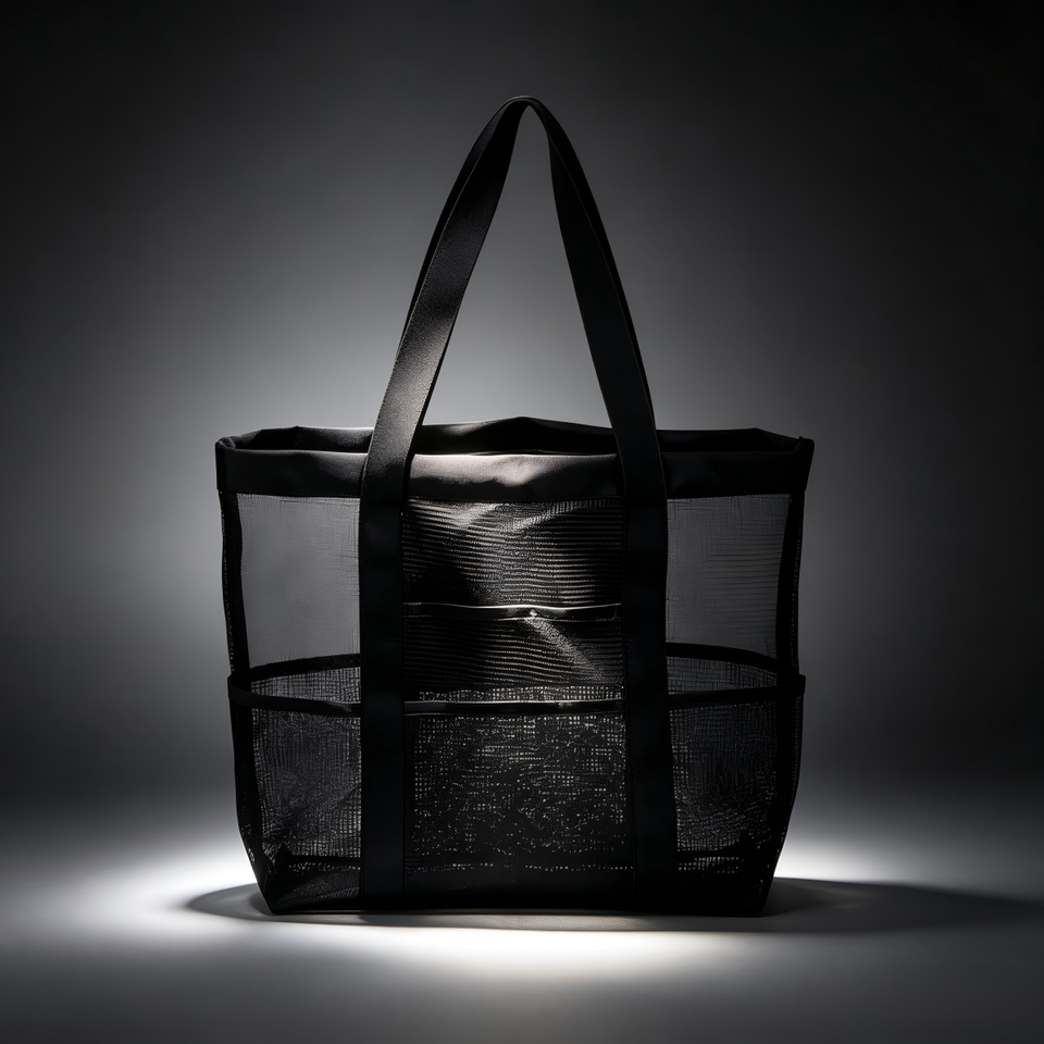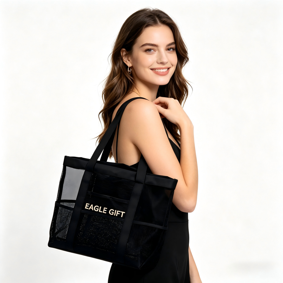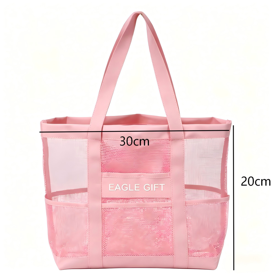 Sac de plage en maille de nylon réutilisable de haute qualité avec sangle en sangle personnalisée, sac fourre-tout en maille pour la plage