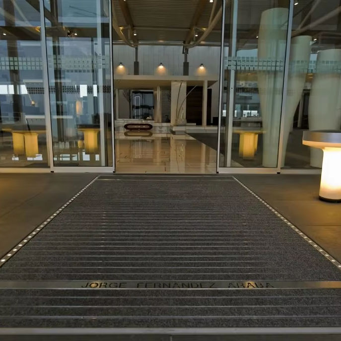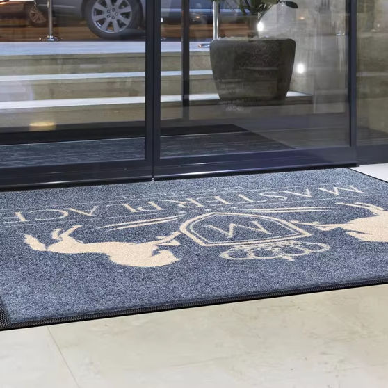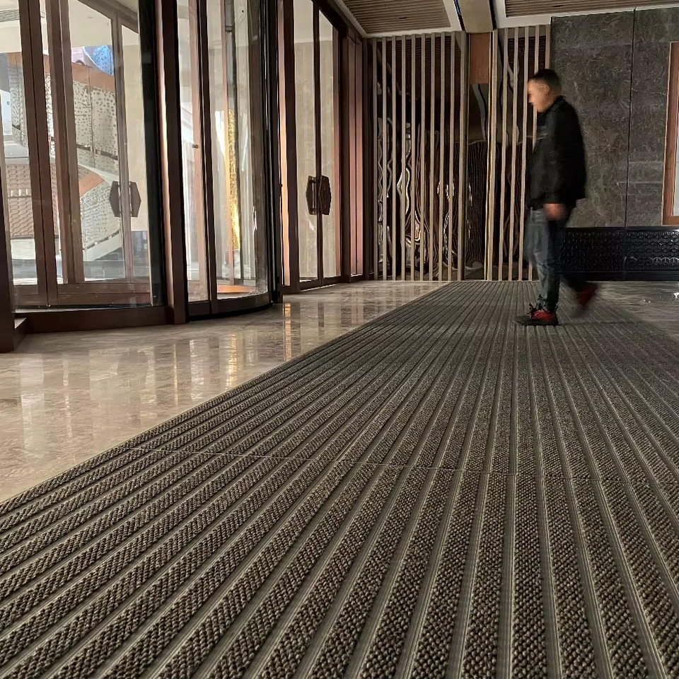 Logo de bienvenue personnalisé tapis en caoutchouc entrée commerciale tapis anti-poussière extérieur anti-boue entrée tapis de sol paillasson pour hôtel