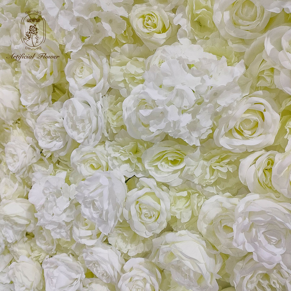 Mur de fleurs 5D 3D blanc personnalisé DKB HQ027, rouleau de tissu, décoration de mariage, panneau de roses artificielles en soie, toile de fond pour Noël, remise de diplôme