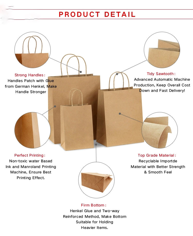 Sac en papier kraft biodégradable de qualité alimentaire blanc personnalisé avec poignée Flexiloop et logo personnalisé