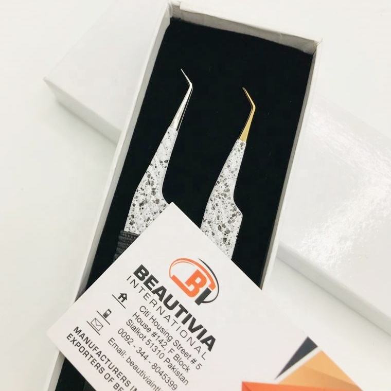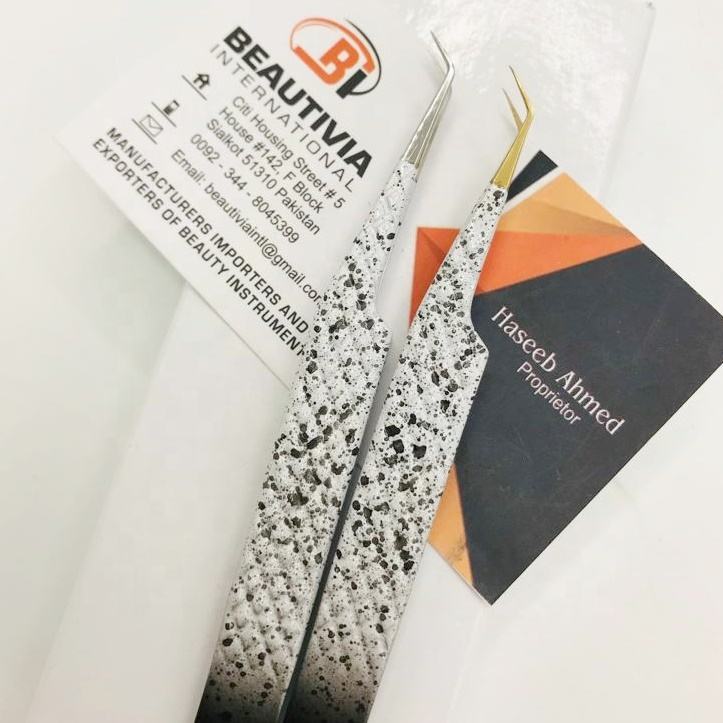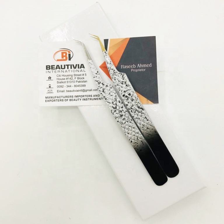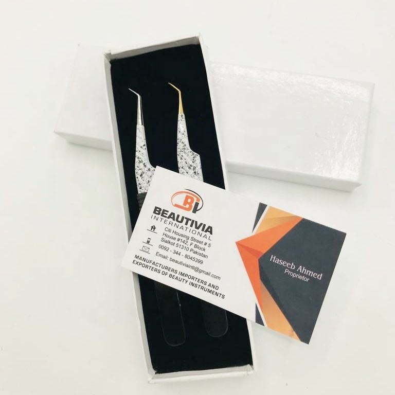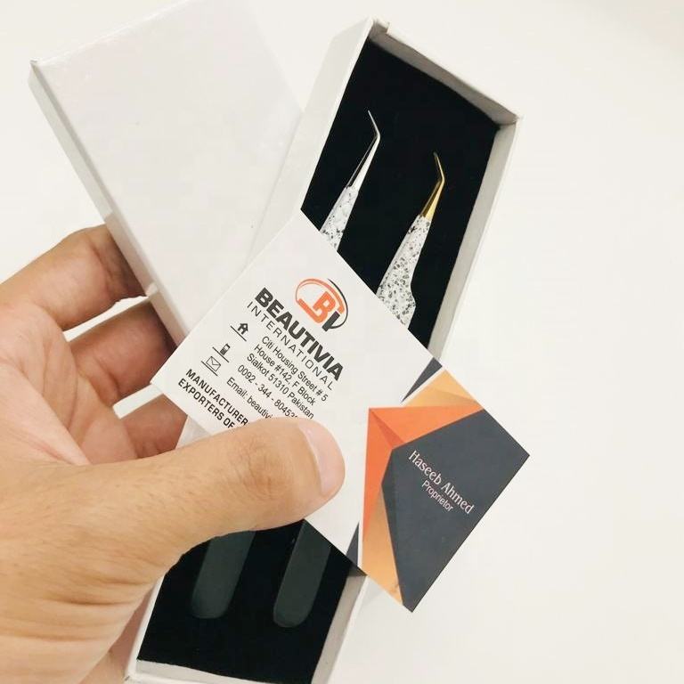 Pince à épiler professionnelle personnalisable en acier inoxydable bicolore, pointe diamantée, revêtement poudré, design durable