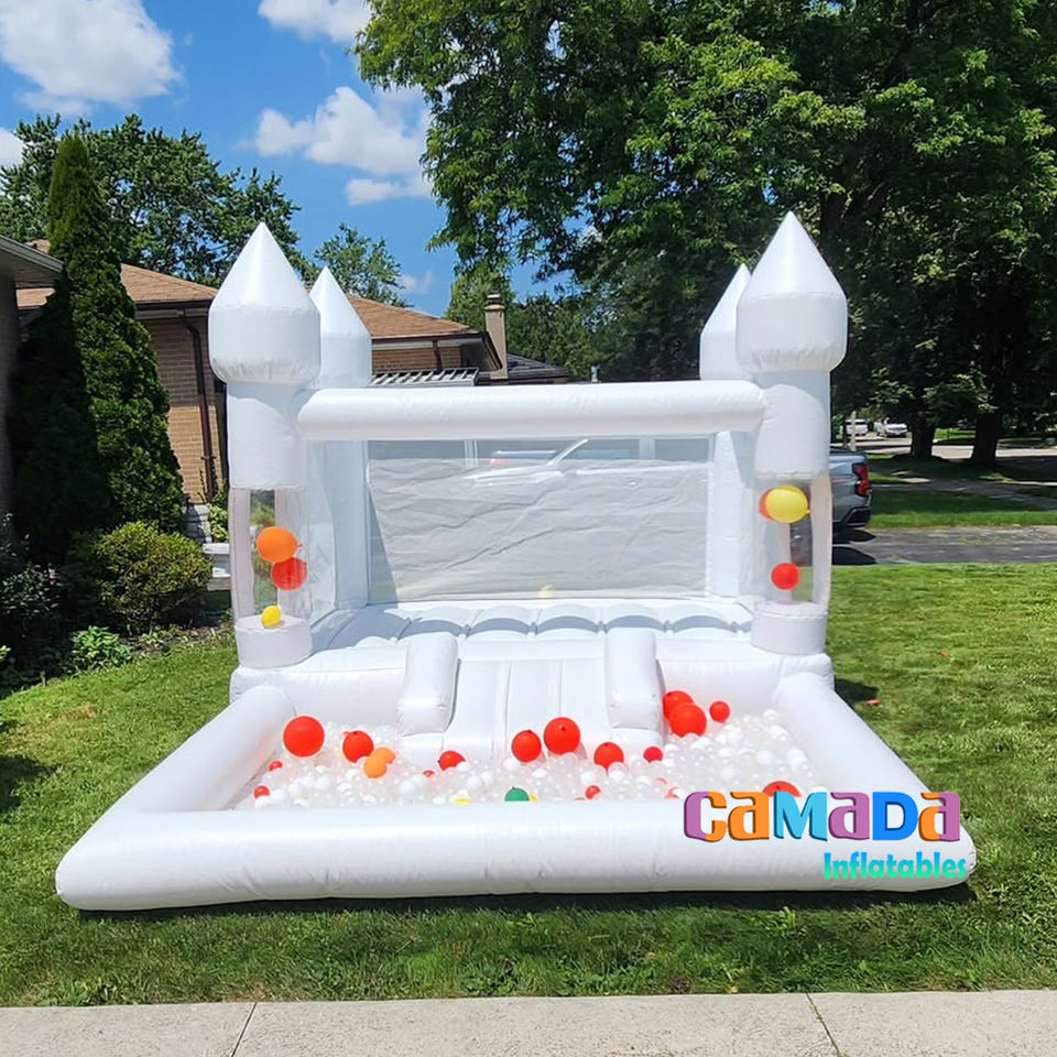 Château gonflable et fosse à balles personnalisés blancs 3m 0,55mm PVC à louer Maison de fête gonflable pour la famille en plein air pour mariage