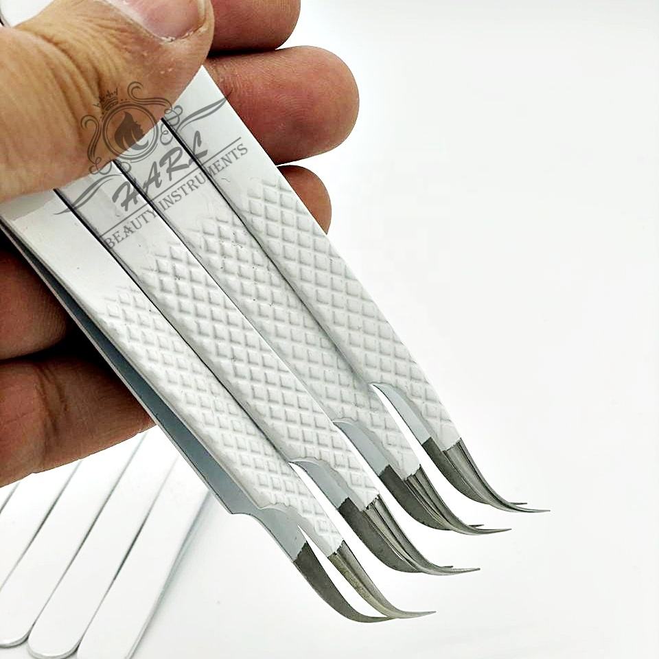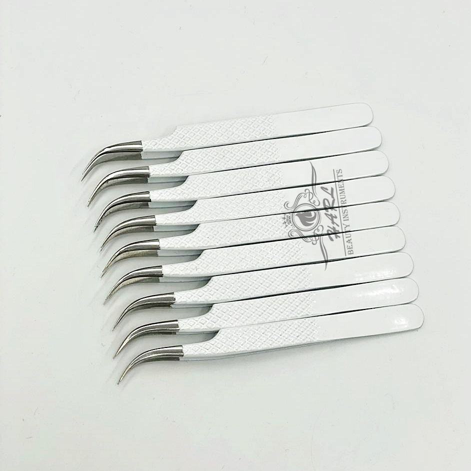 Pince à cils personnalisée blanche incurvée en acier inoxydable Type de pointe en fibre Fournitures de beauté pour extensions de cils