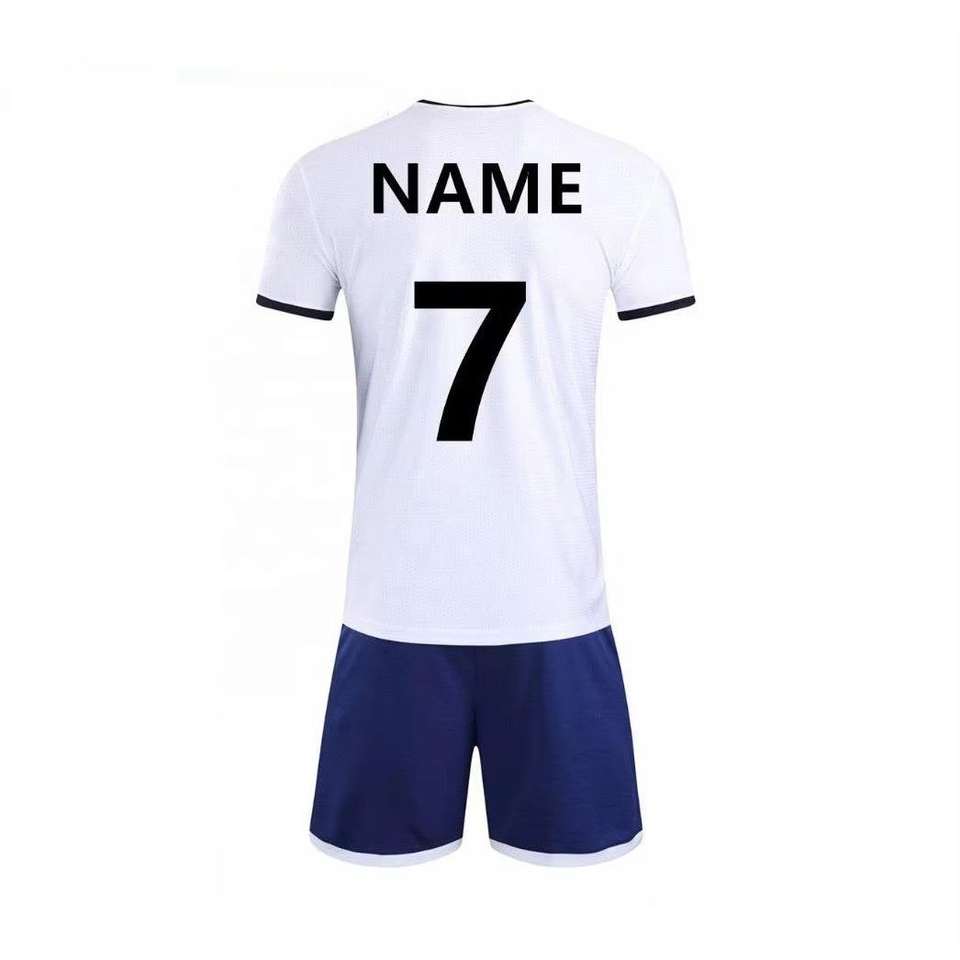 Ensemble de Tenue de Football Personnalisée à Motifs Blancs et Bleu Marine - Maillot et Short pour Jeunes/Adultes avec Numéro/Nom Personnalisable