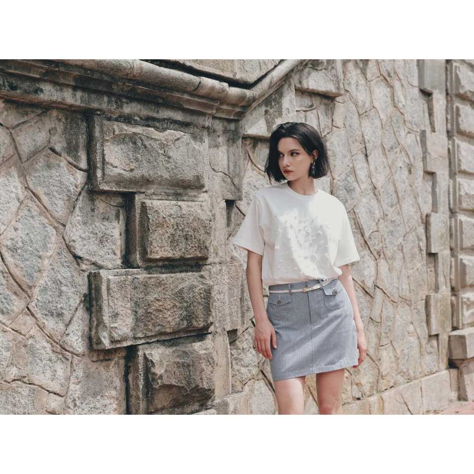 Custom White Premium Cotton T Shirt for Women Urban Street Style with Rhinestone Detail by Enzo and Leo Vietnam Apparel Brand