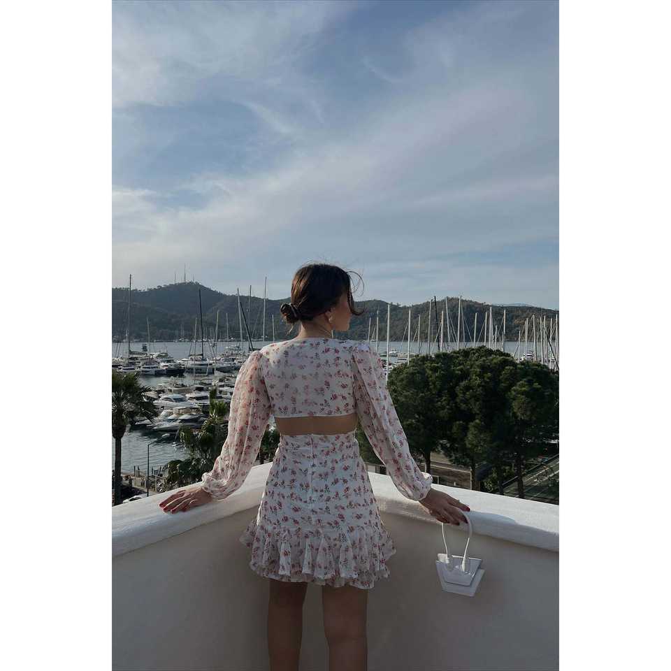 Robe personnalisée à motif de roses blanches avec découpes latérales, élégante et décontractée, vêtements grande taille pour les mariages, les clubs, les journées, tailles XS à XL