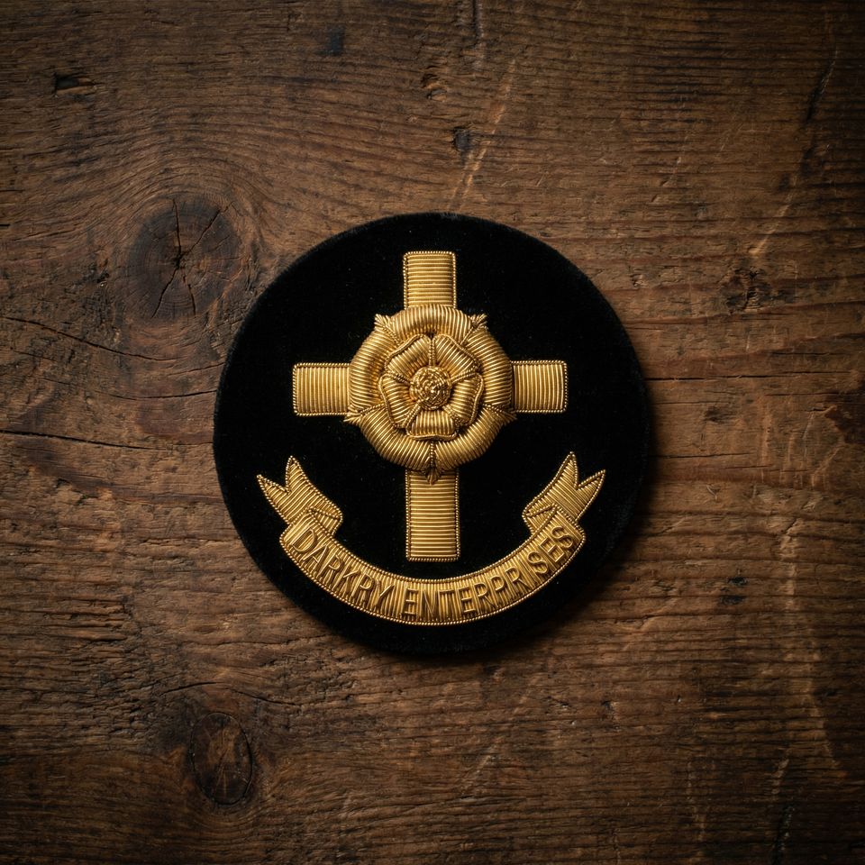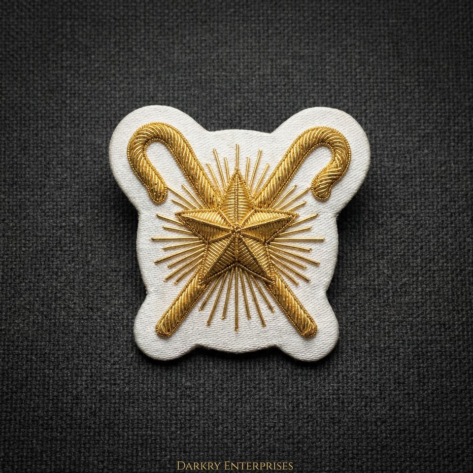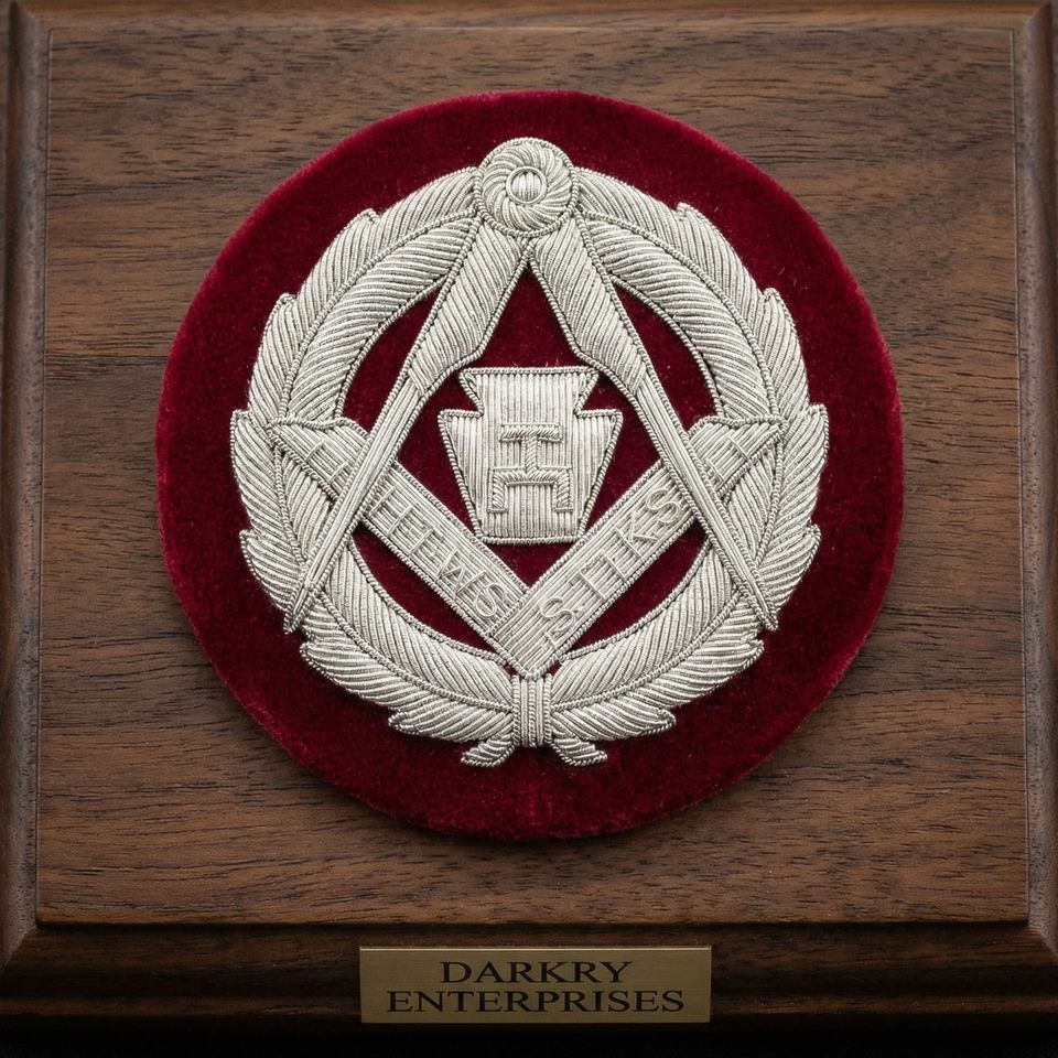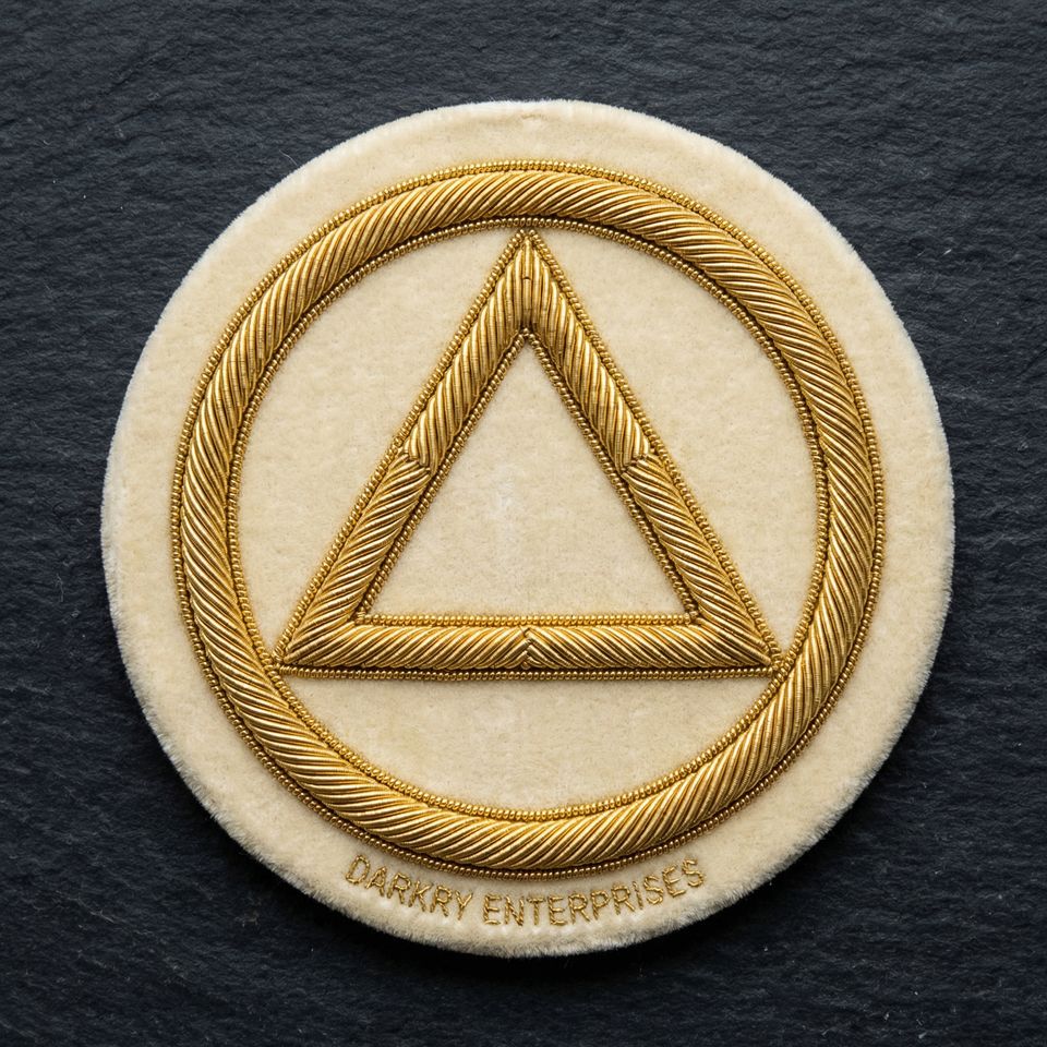Badge brodé sur mesure en fil de velours blanc, emblème triangle et cercle dorés, fait main, patch maçonnique, insigne de blazer