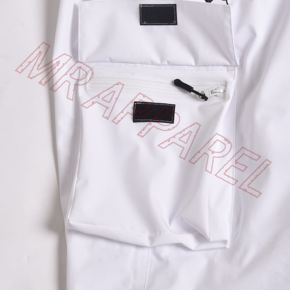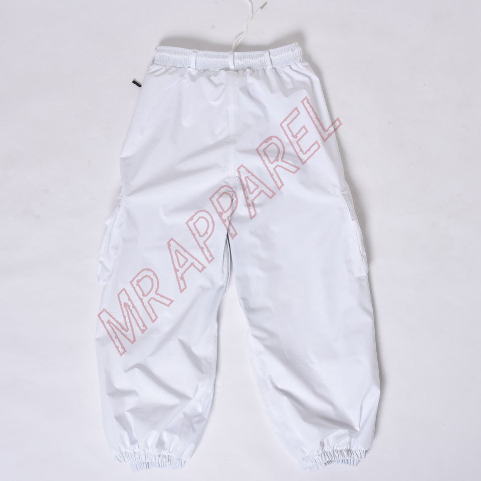 Pantalon de snowboard imperméable blanc personnalisé avec cordon de serrage à la taille poches cargo aux genoux évents bas élastiques et guêtres de bottes