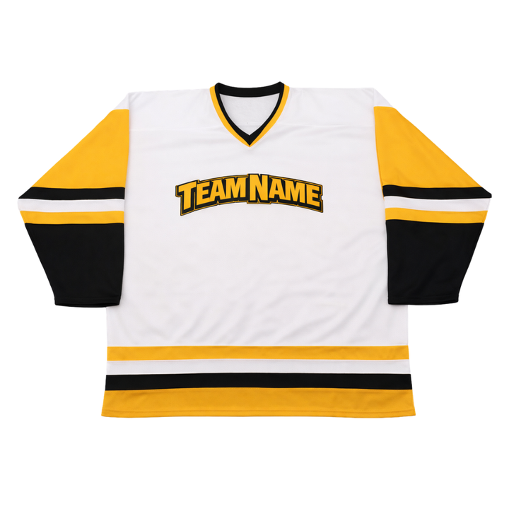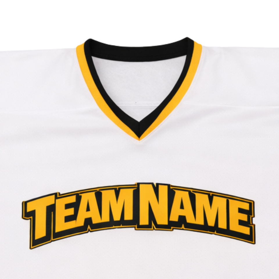 Maillot de hockey sur glace personnalisé blanc, jaune et noir, sublimation, uniforme de hockey professionnel, respirant, pour homme, à manches courtes, anti-humidité