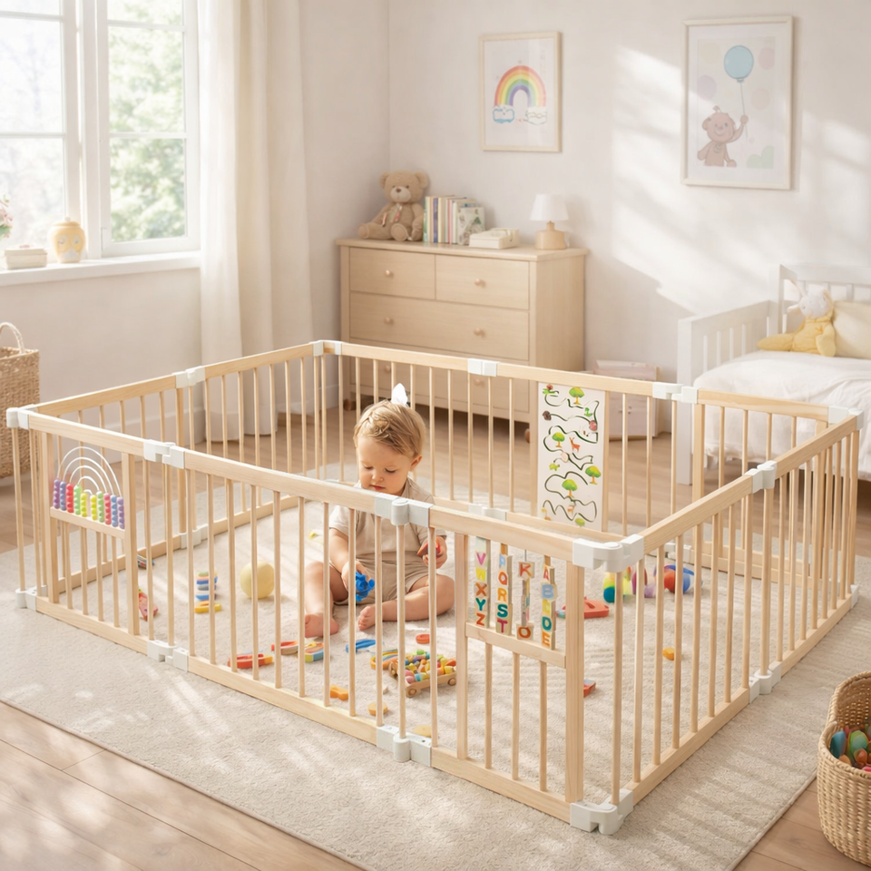 Parc de jeu pliable en bois pour enfants, grande taille, avec porte, idéal pour chambre de bébé et salon – Vente en gros personnalisée
