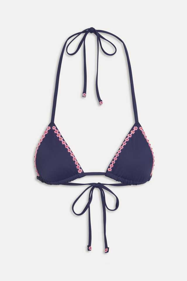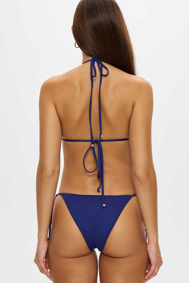 Ensemble de bikini bleu plissé personnalisé en gros avec haut à col en V et bas string, maillot de bain de luxe deux pièces pour femme