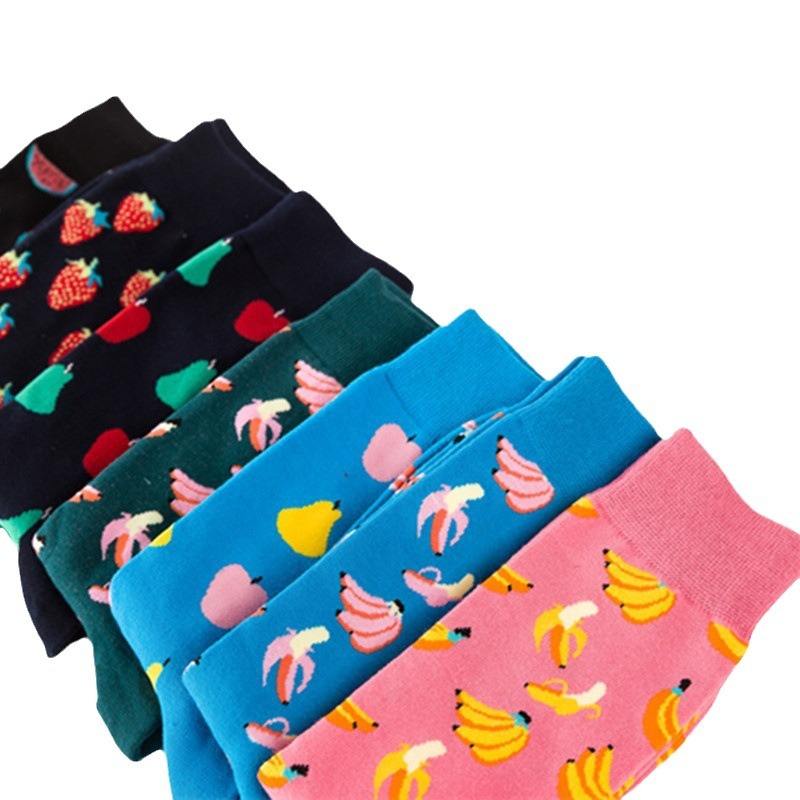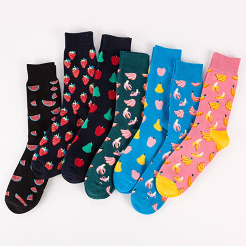 Personnalisé en gros pas cher drôle chaussettes hommes coton fruit banane fraise motif chaussettes femmes équipage unisexe chaussettes