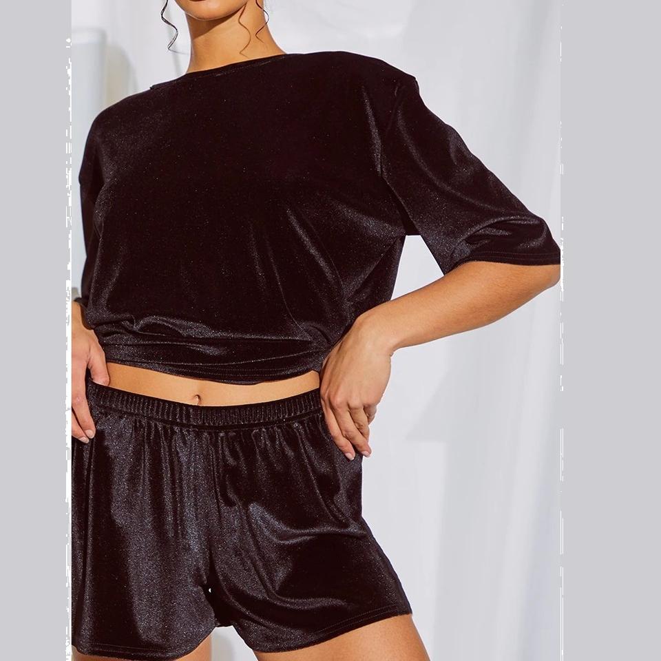 Ensemble short et crop top d'été personnalisé en velours, 2 pièces, survêtement en velours respirant, vente chaude