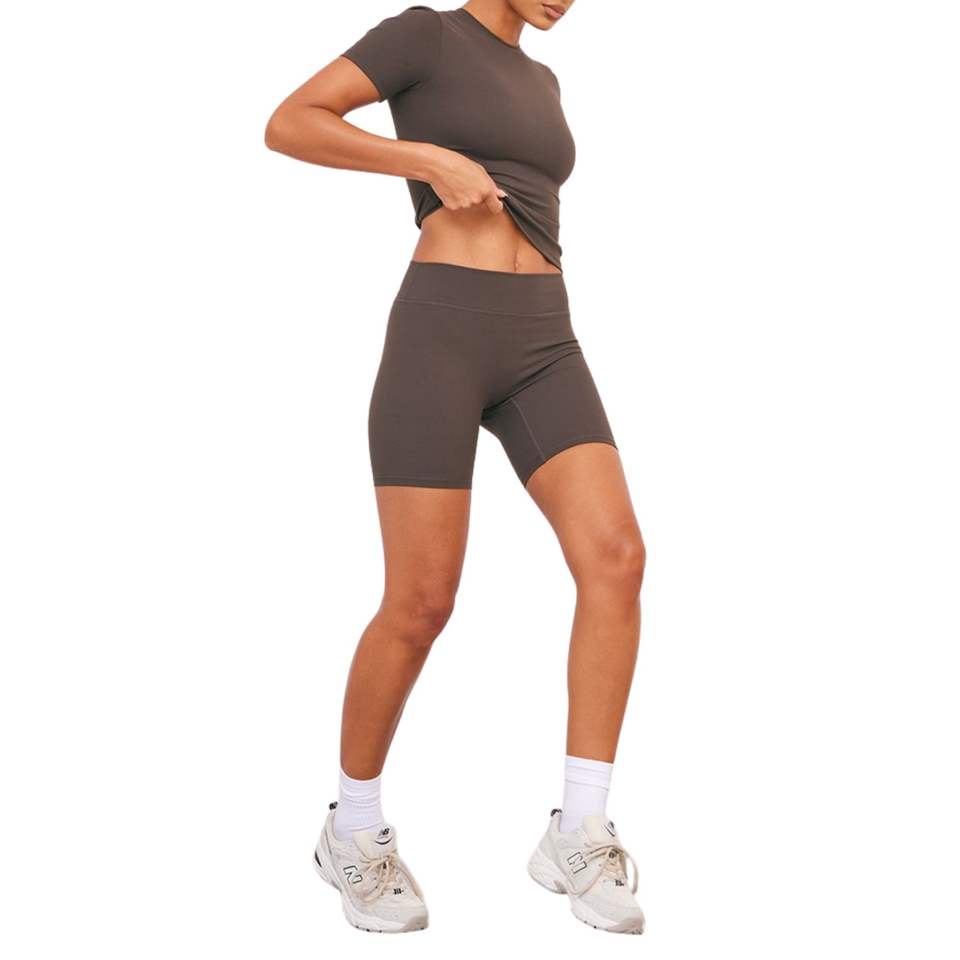 Haut court côtelé à col montant et manches courtes pour femme, personnalisable en gros, idéal pour l'été et la gym - Grande Vente