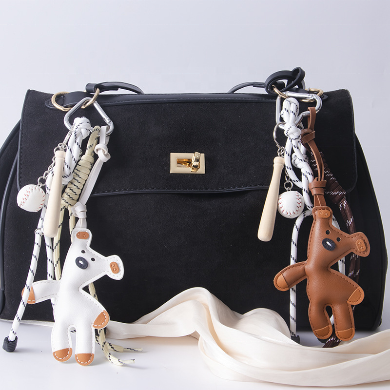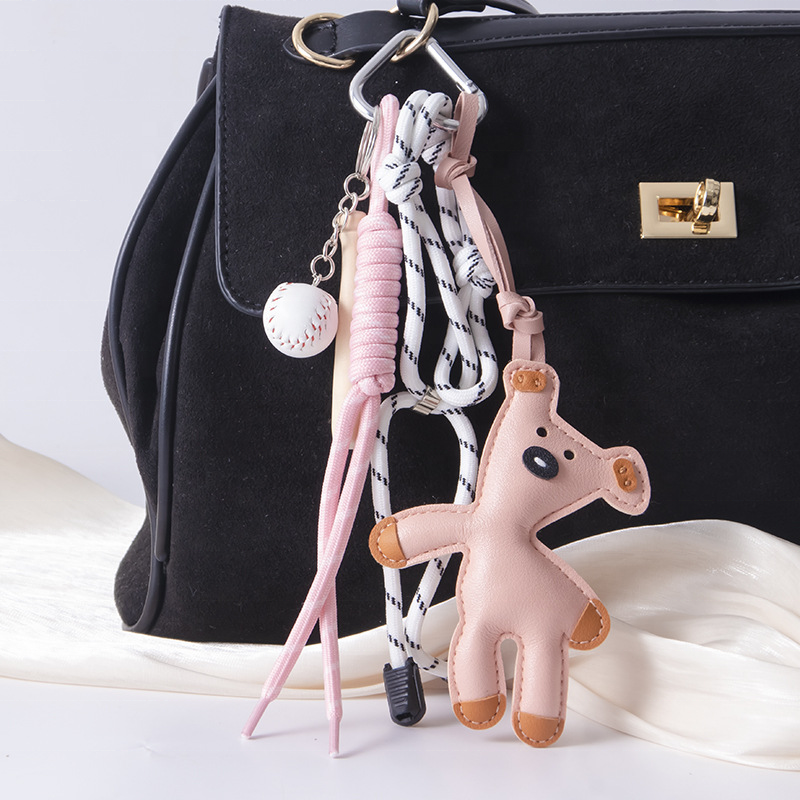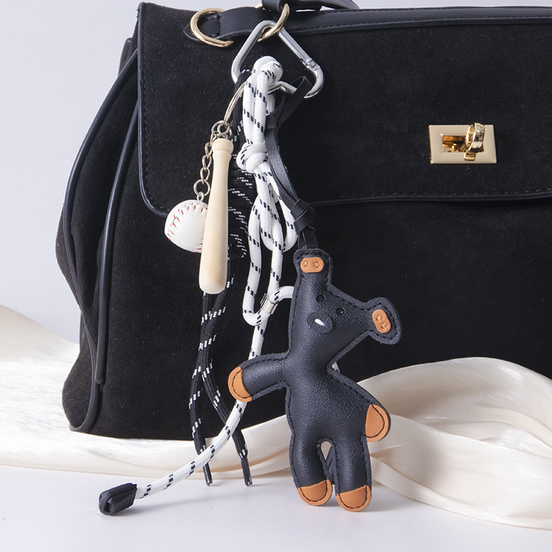 Custom Wholesale Durable Eco-Friendly Animal Leather Bear Shape Fashion Car Keychain Bag Pendant for Decoration