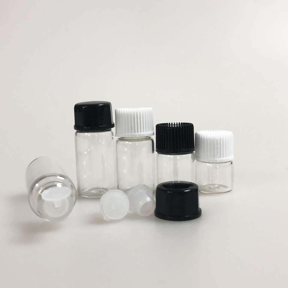 Flacon compte-gouttes en verre transparent pour huile essentielle, vente en gros personnalisée, avec bouchon à vis et capuchon antivol pour enfants, capacités de 1 ml à 5 ml
