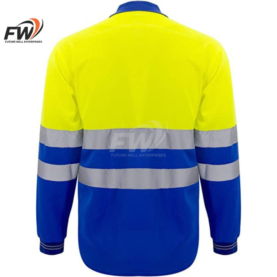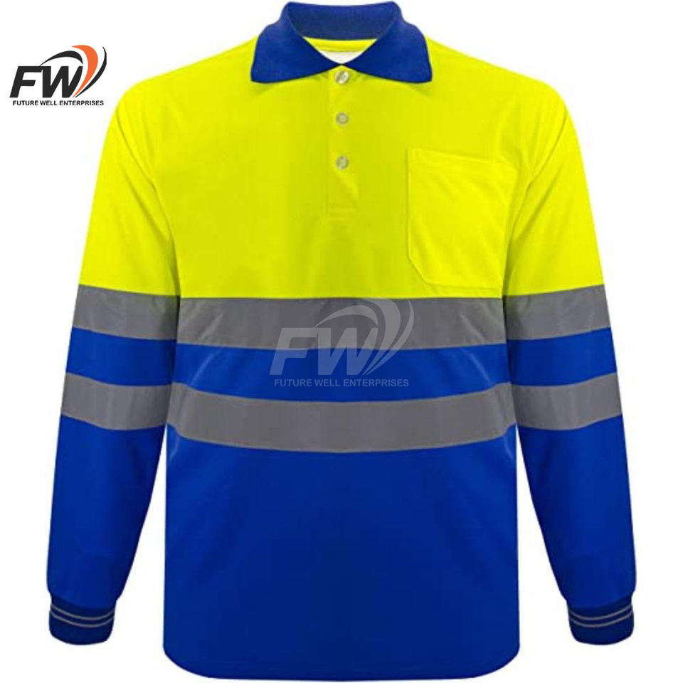 Polo de travail haute visibilité personnalisé en gros à manches longues avec bande réfléchissante pour la construction, l'ingénierie et la logistique