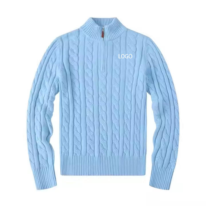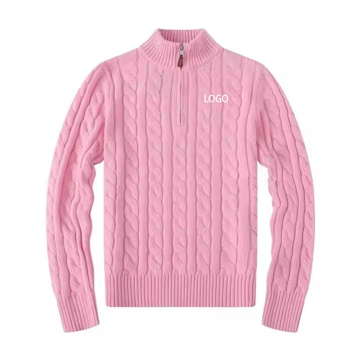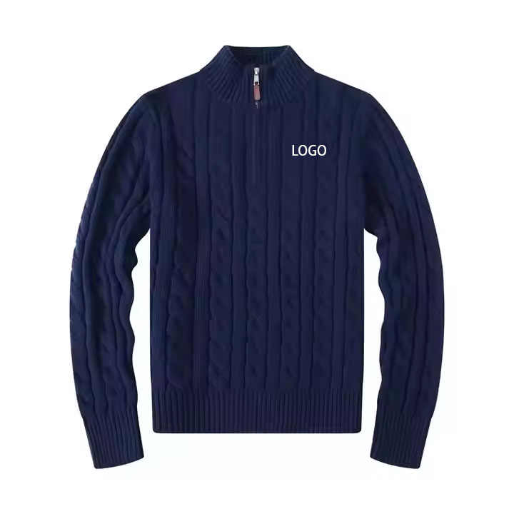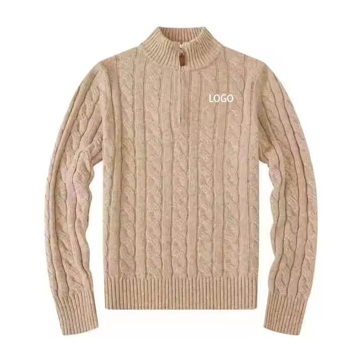 Pull en maille pour homme, personnalisé, de haute qualité, nouveau, avec demi-fermeture éclair, chaud et tendance, logo et couleur personnalisables