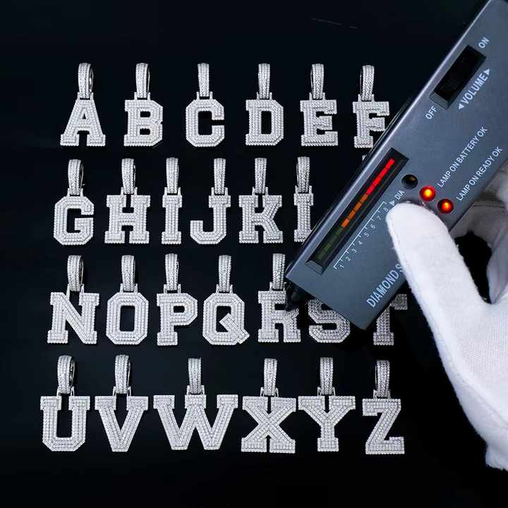 Bijoux Hip Hop sur mesure en gros, argent sterling 925, serti de diamants, moissanite, pendentif en lettres A-Z pour hommes